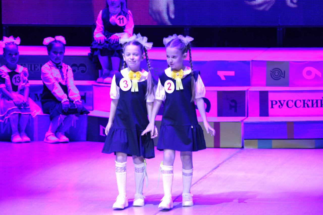 Участники демонстрировали свои таланты и способности в дефиле, интеллектуальном и творческом конкурсах. Наши девочки выступали с танцевальным номером «Первый день в школе». Вместе с Аленой и Алисой на сцену вышли наши ученики из 1-7 классов и учитель английского языка - вот это настоящая поддержка!